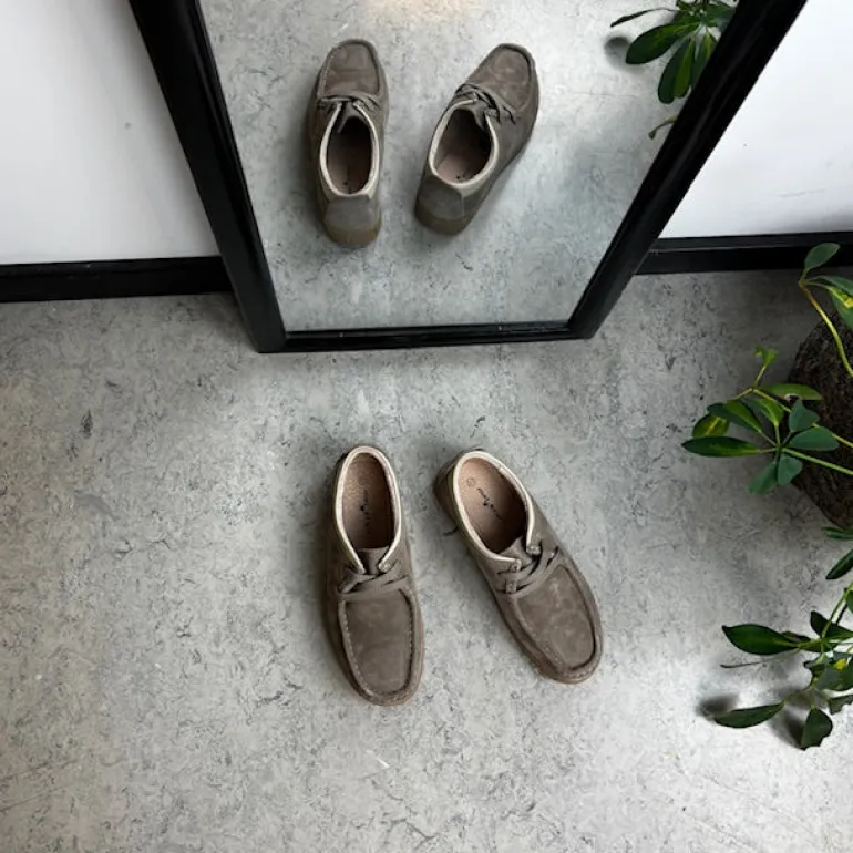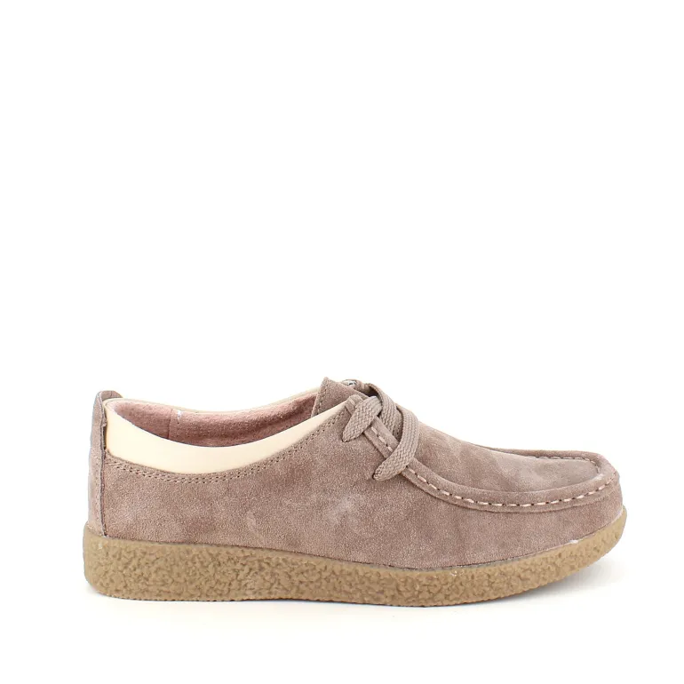 Beige ruskindssko med rågummisål