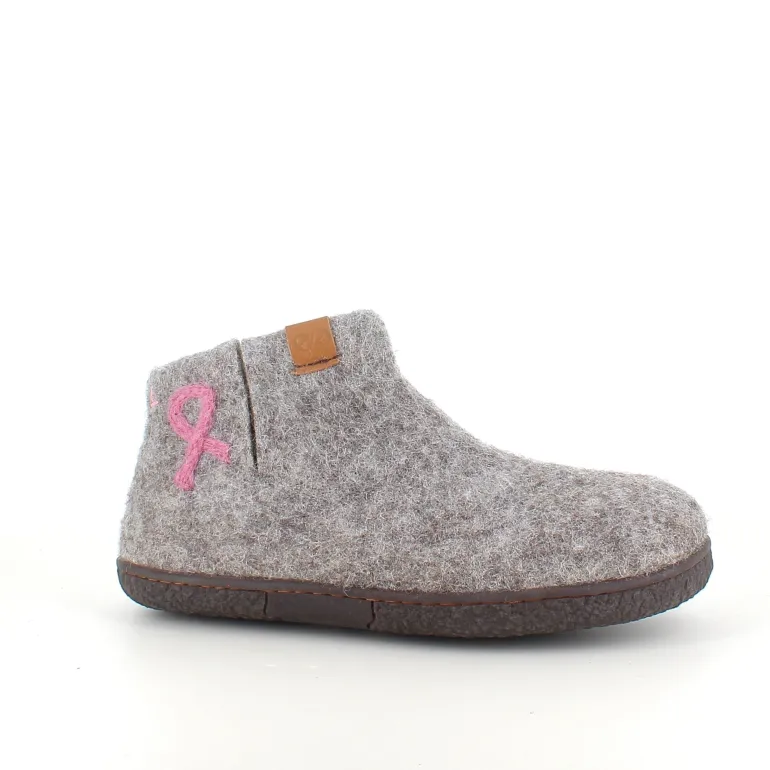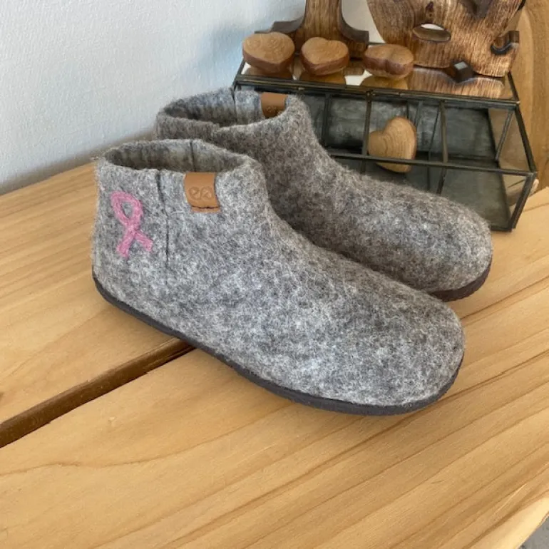 Oplev vores limited-edition uldhjemmesko, skabt i samarbejde med Støt Brysterne og Green Comfort, hvor hver eneste sko er håndbroderet med den velkendte lyserøde sløjfe på højre yderside. Når du køber et par uldhjemmesko fra denne kollektion, går 50 kr. direkte til Støt Brysterne, så du tager små skridt med stor betydning.