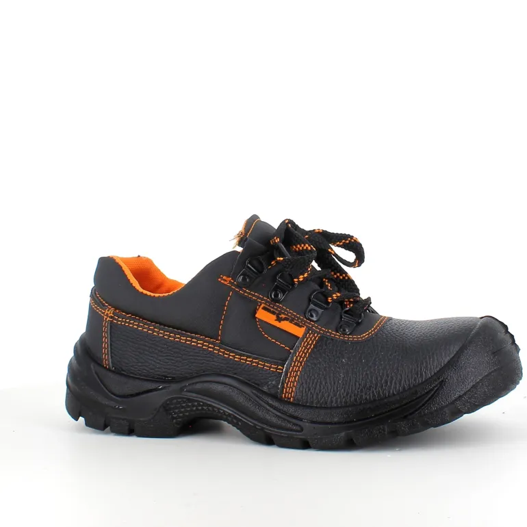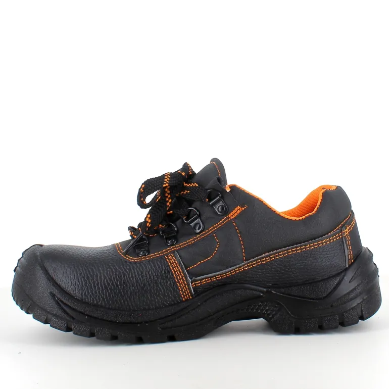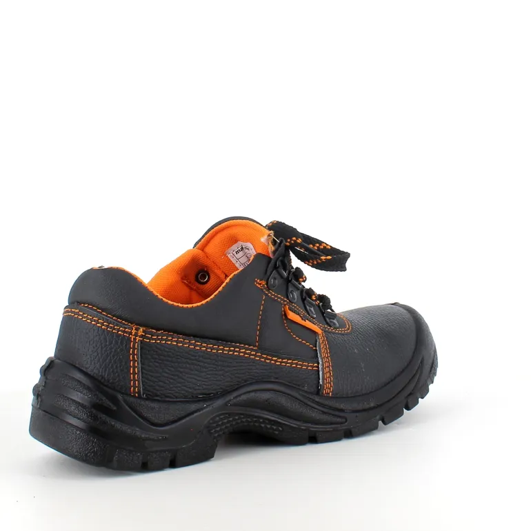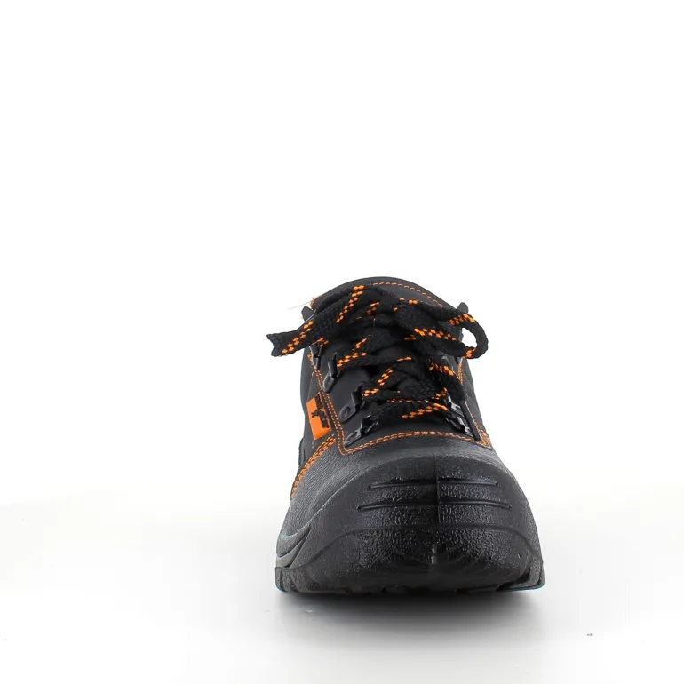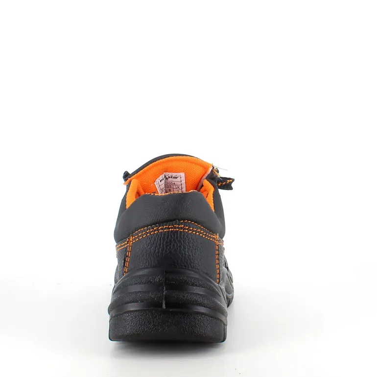 Sort sikkerhedssko med overdel i læder.