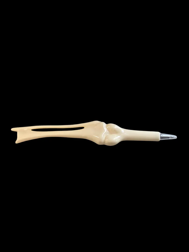 Knæskalskuglepennen er en anderledes og humoristisk kuglepen, der ligner en knæled/underbensknogle.