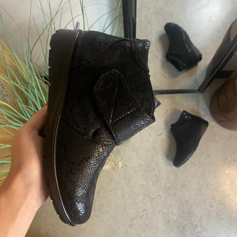 - Materiale: Blød overdel med let præget mønster, der giver et elegant look.