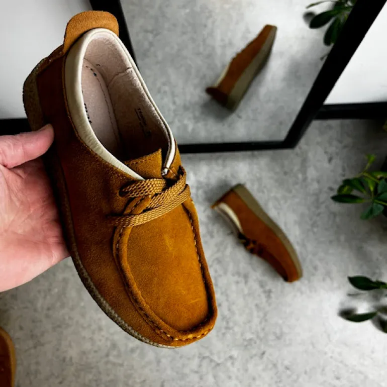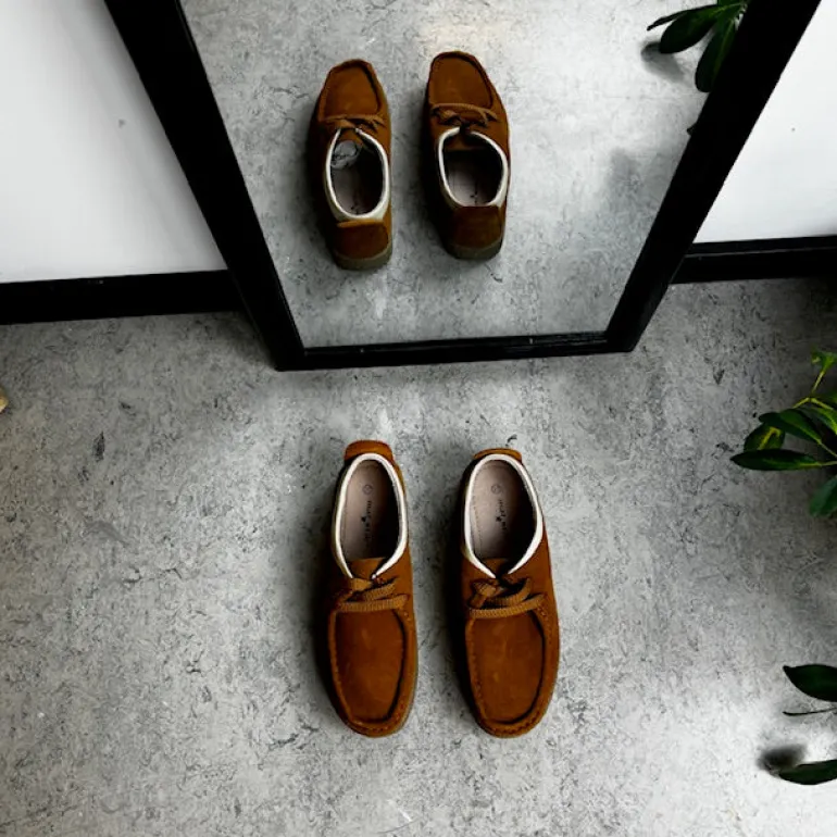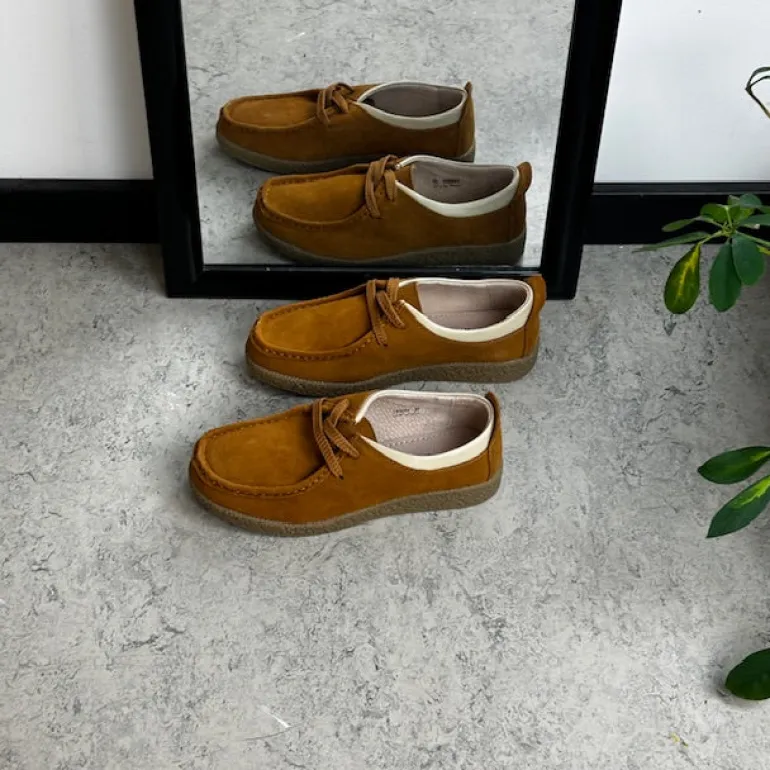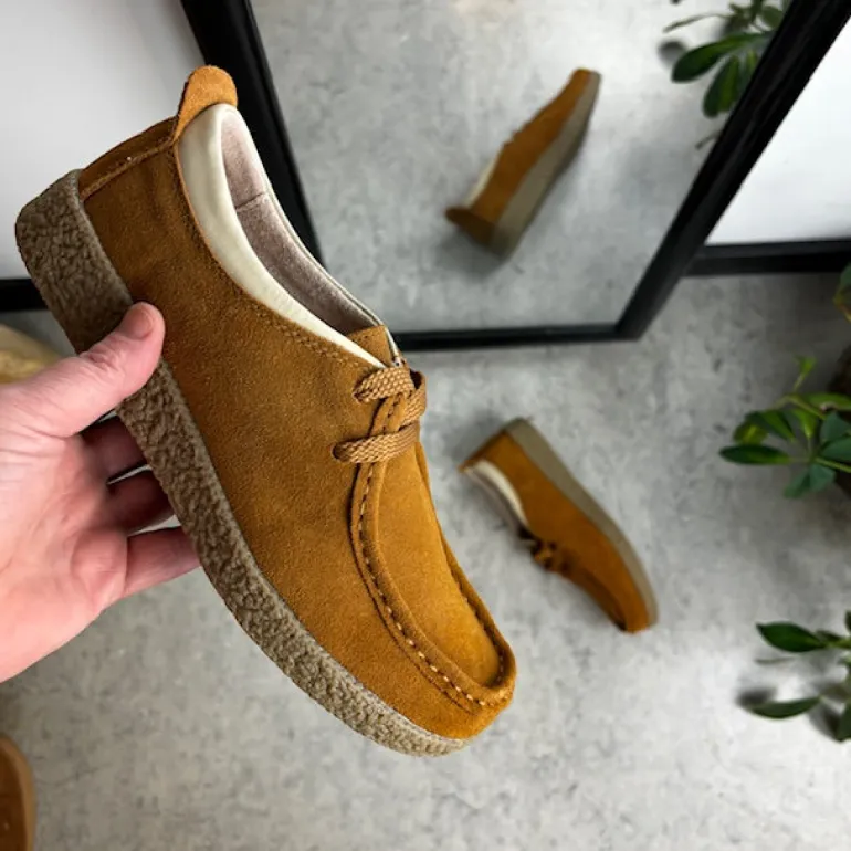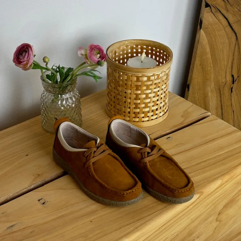 Lys brun ruskindssko med rågummisål