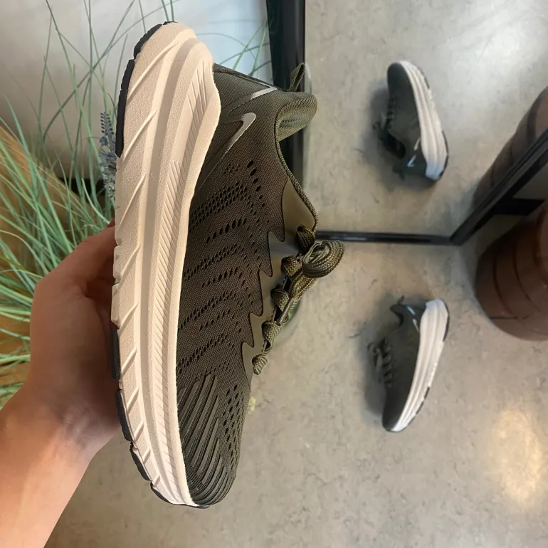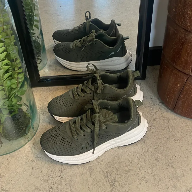 Mørkegrøn åndbar sko fra Endurance med effektiv stødabsorbering.