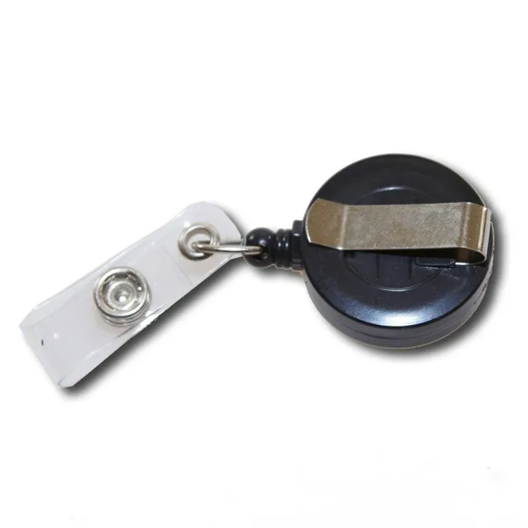Nøglering med metal clips for nem fastgørelse til lomme, bælte eller bukselinning. Nøgleringen er udstyret med en plastic snap loop til ID-kortholdere.