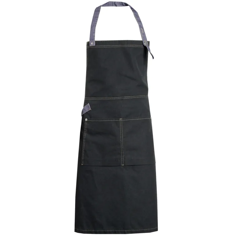 Det funktionelle kuskeforklæde, Nybo Sort/Denimblå Unisex New Nordic Kuskeforklæde, er en moderne fortolkning af traditionelt nordisk arbejdstøj, designet specielt til nutidens kokke og tjenere. Dette forklæde byder på en justerbar nakkestrop og lange bindebånd ved hoften, som kan tilpasses individuelt for maksimal komfort. Uanset om du ønsker at binde forklædet foran eller bagpå, vil det tilføje et elegant touch til dit professionelle look.