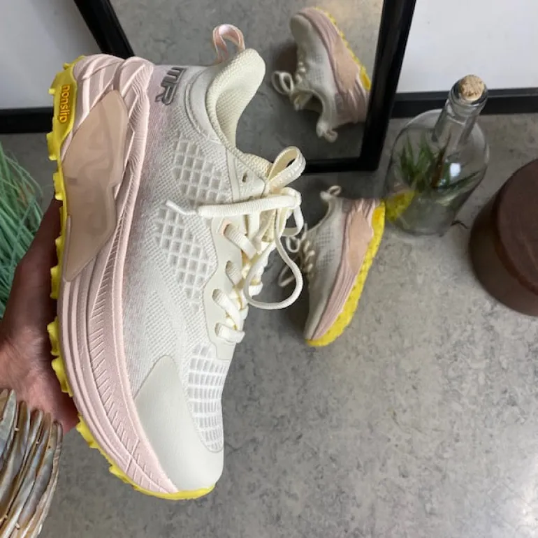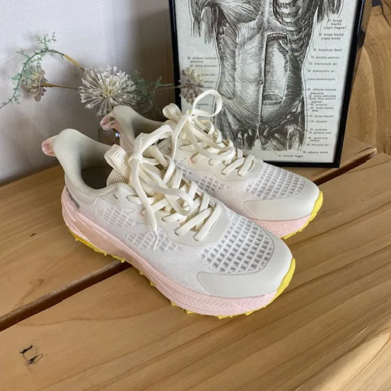 Denne råhvide letvægtssko kombinerer et sporty look med praktiske funktioner.