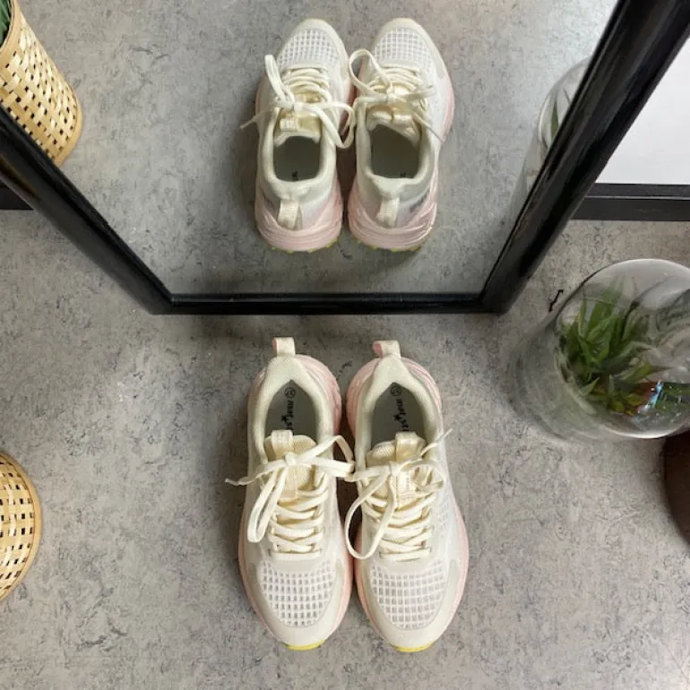 De flotte detaljer i en frisk farvekombination af hvid og rosa giver skoen et moderne og stilfuldt udtryk.