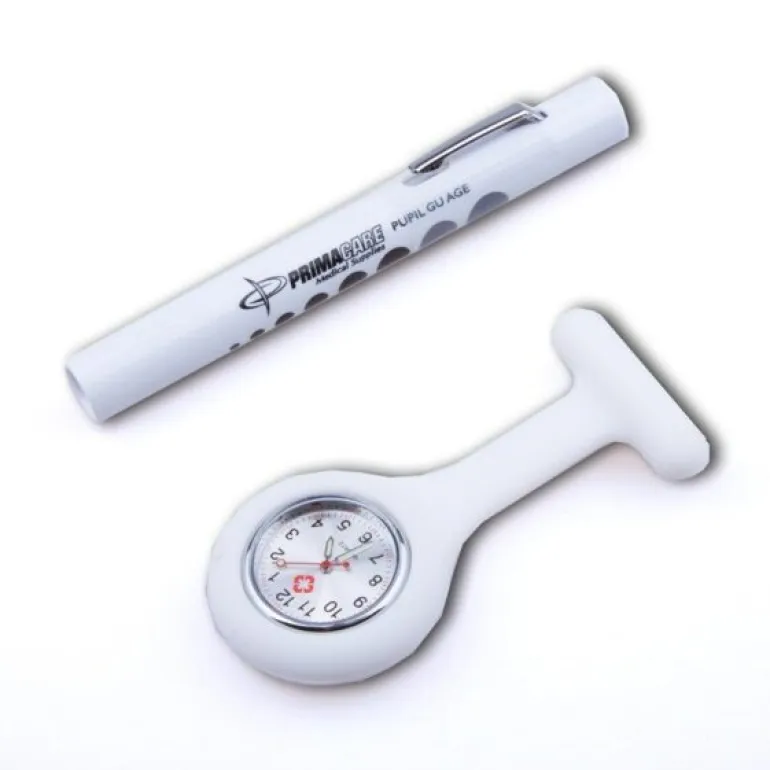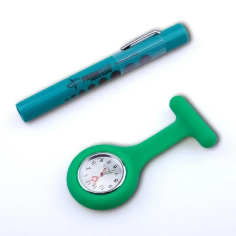 Pakkesæt med sygepleje silikoneur og penlygte i samme farve.