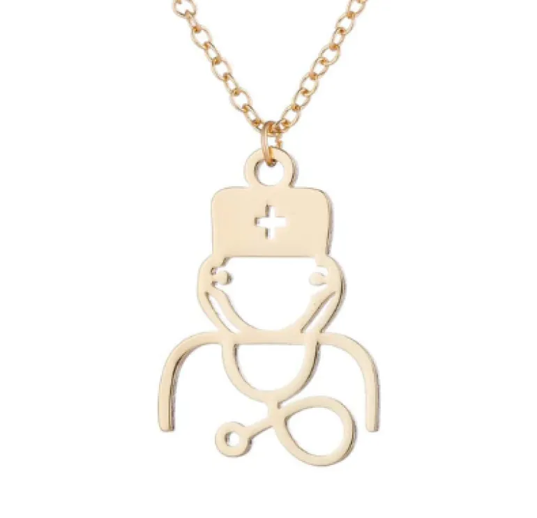 Halskæde i guldtone med sundhedspersonale i vedhænget.