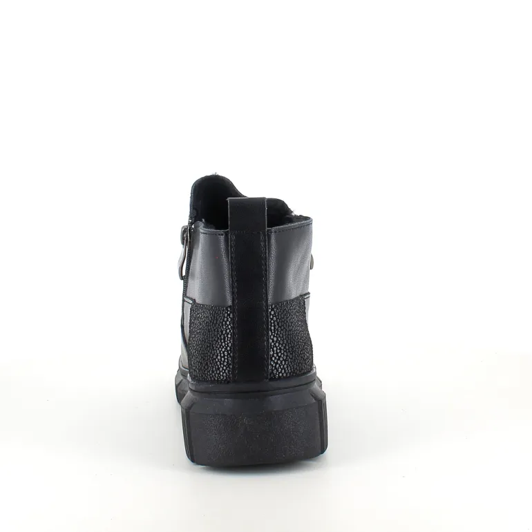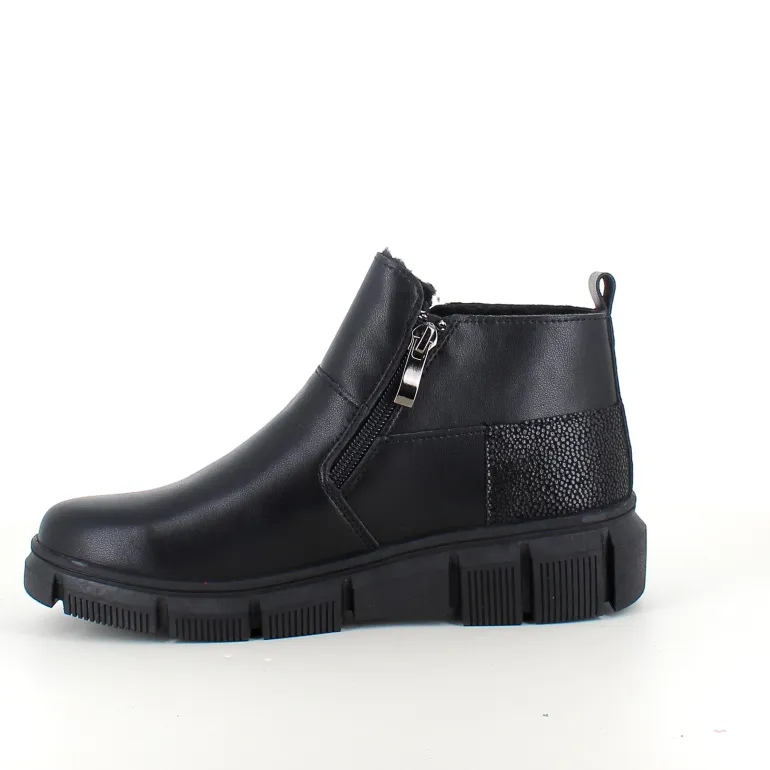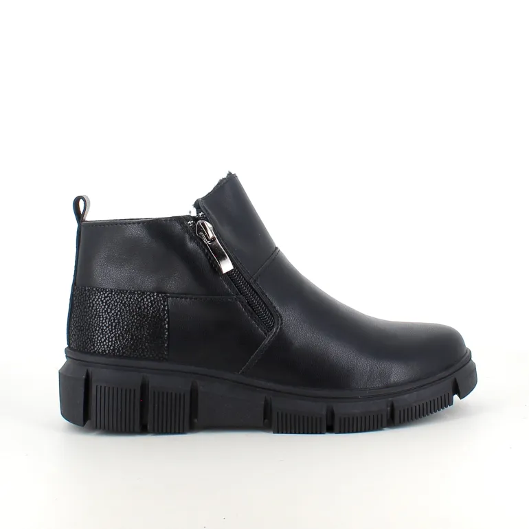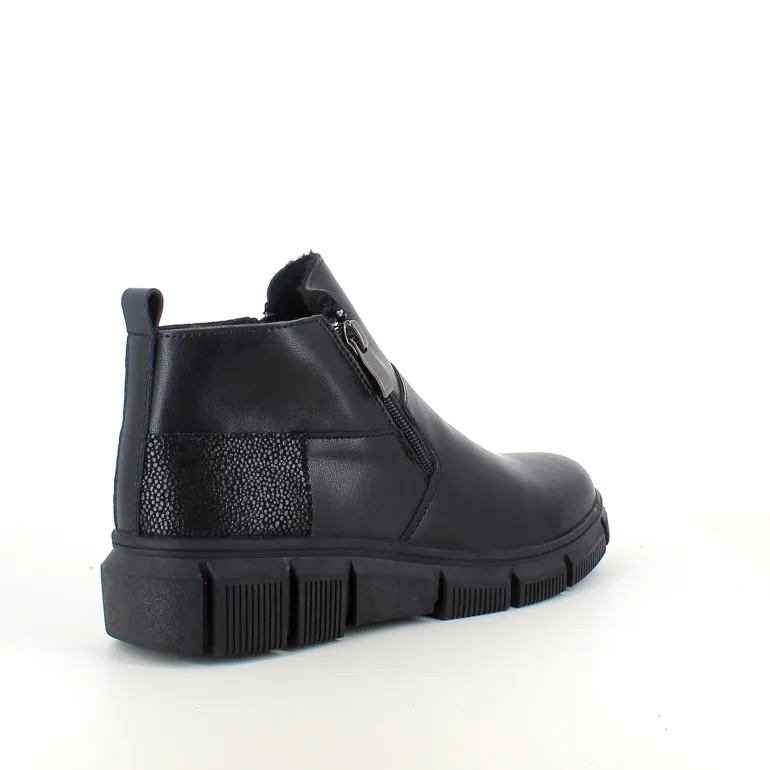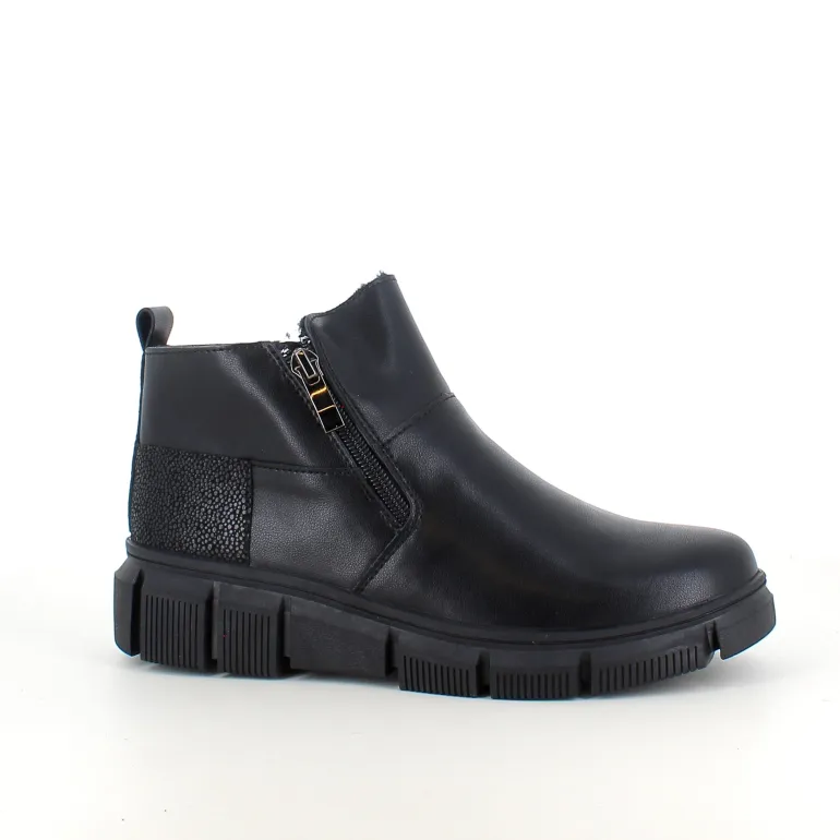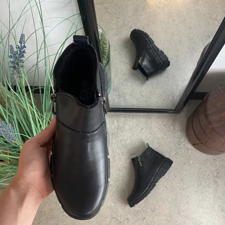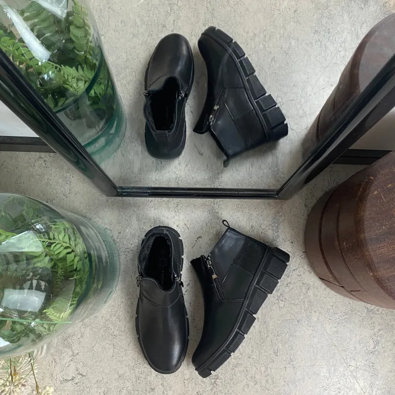 Denne sorte ankelstøvle kombinere klassisk design med praktiske detaljer. Støvlen er foret med blødt og varmt for, som sikre komfort i de kolde måneder.
