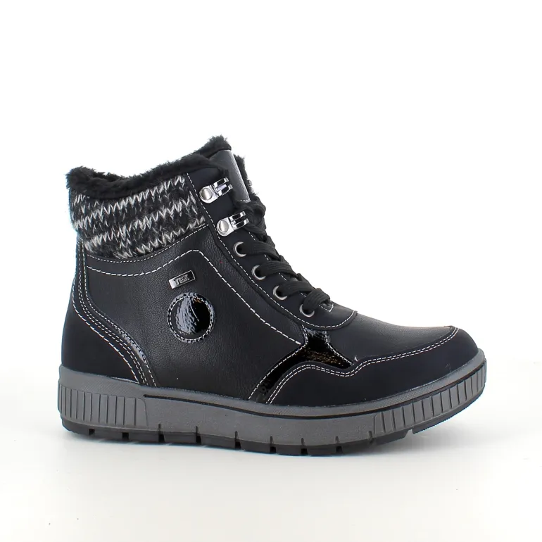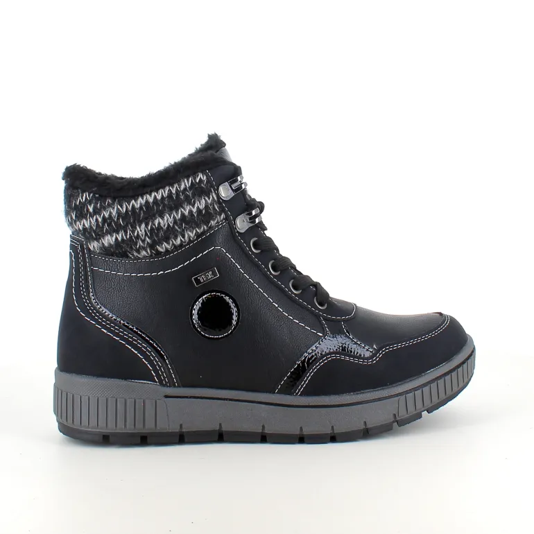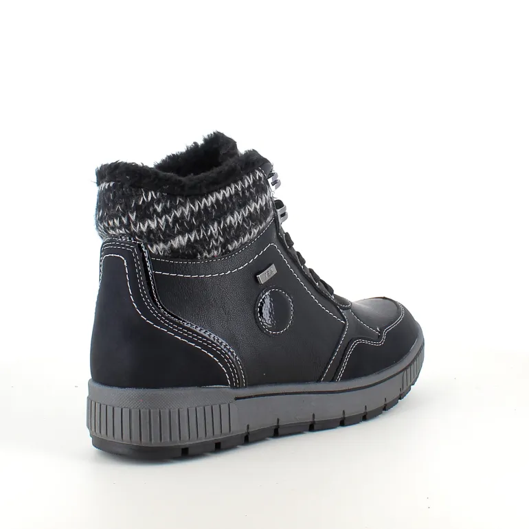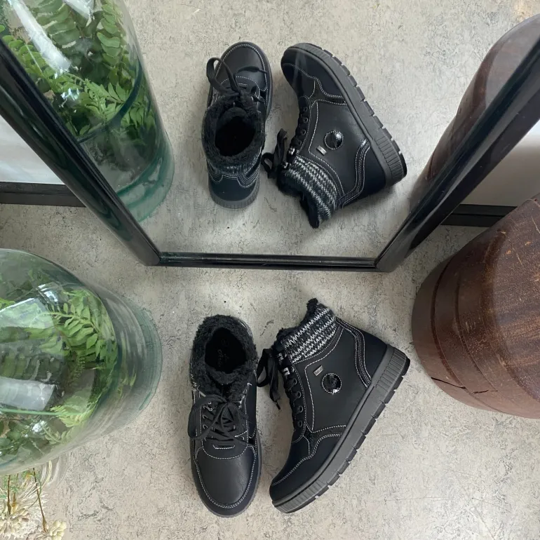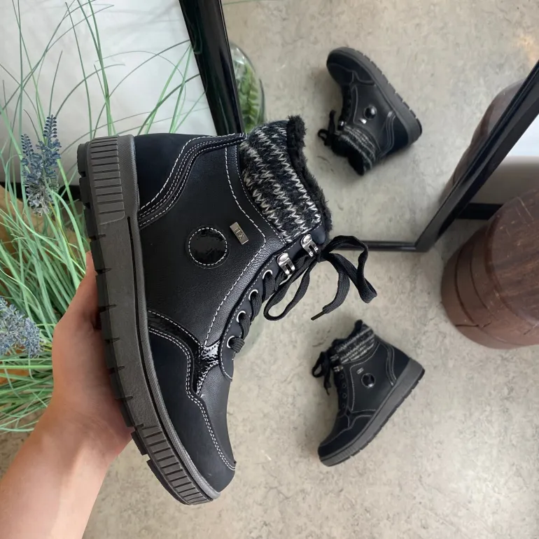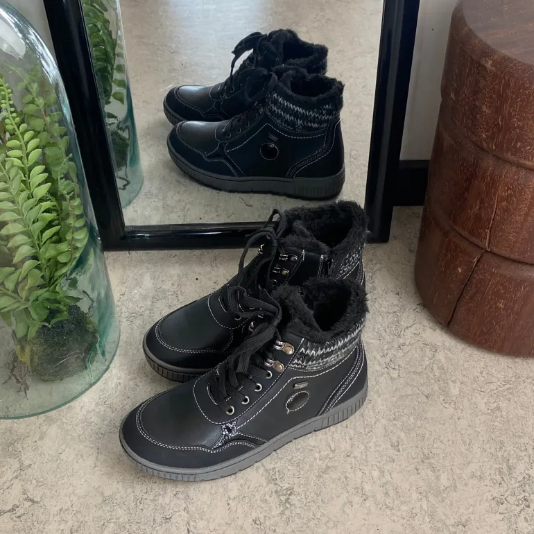 Vinterstøvle i sort, med strikket detalje på skaftet.