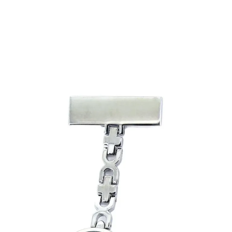 Sygeplejeuret med kæde med gravering. Sygeplejeuret er i stål med valgfri gravering. Sygeplejebutikken anbefaler gravering af bogstaver max. 14 bogstaver.