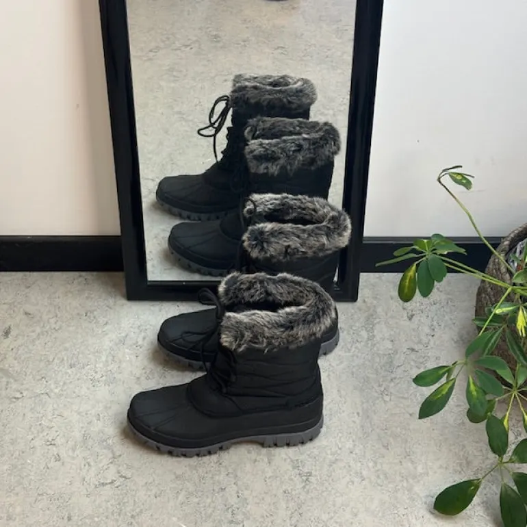 Sort vinterstøvle med flot pelskant øverst på det 21 cm høje skaft.