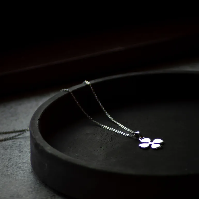 Firkløveret i sølv med tilhørende halskæde.