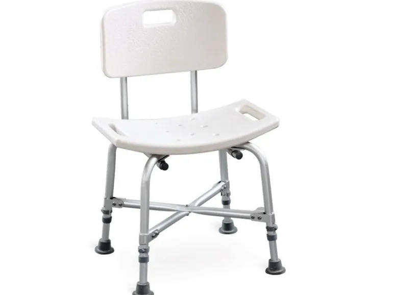 Forstærket badesol med ryglæn, så du kan hvile ryggen under badet. Badestolen har aluminiumsramme, justerbare og skridsikre ben.