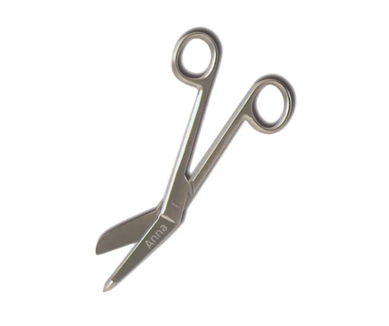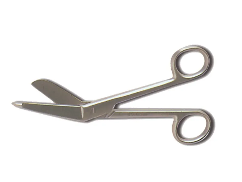 Vinklet sygeplejesaks i stål med dup, der er brugbar til mange af hverdagens gøremål.