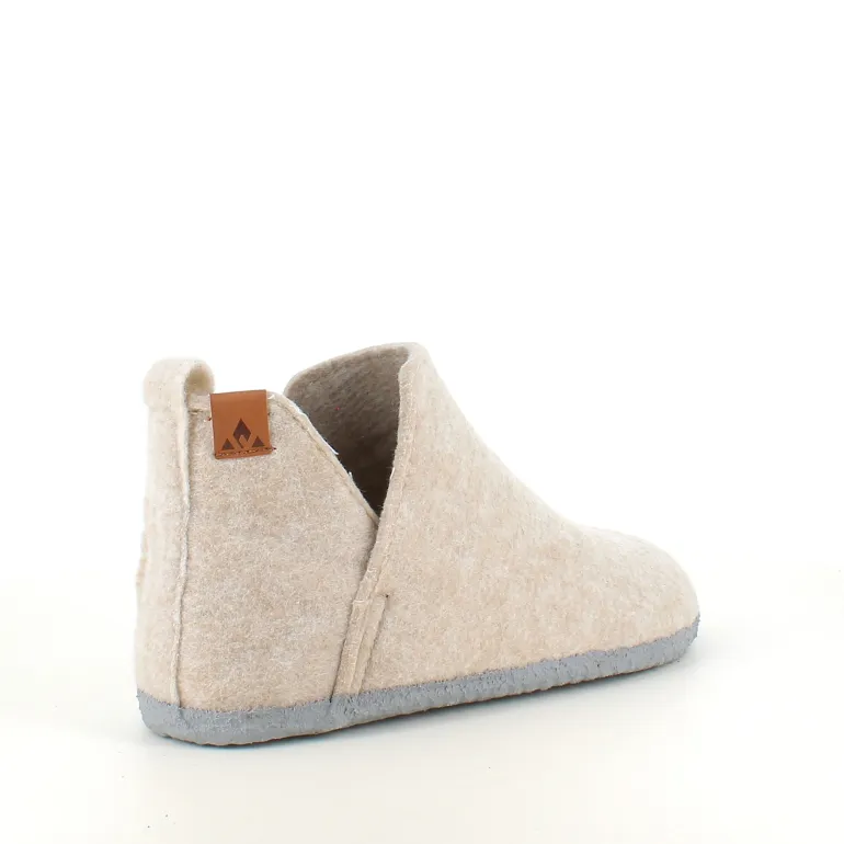Komfortable beige hjemmesko med et højt skaft på 12 cm, der giver ekstra varme og støtte omkring anklen.