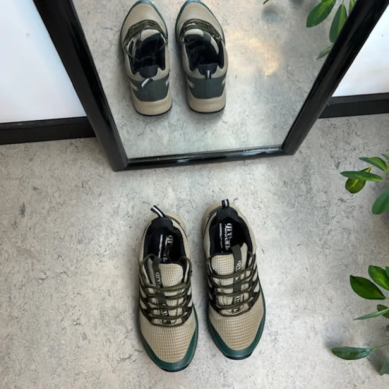 En rigtig komfortabel og praktisk sko fra Green Comfort med mørkegrønne detalje ved hælen og bunden