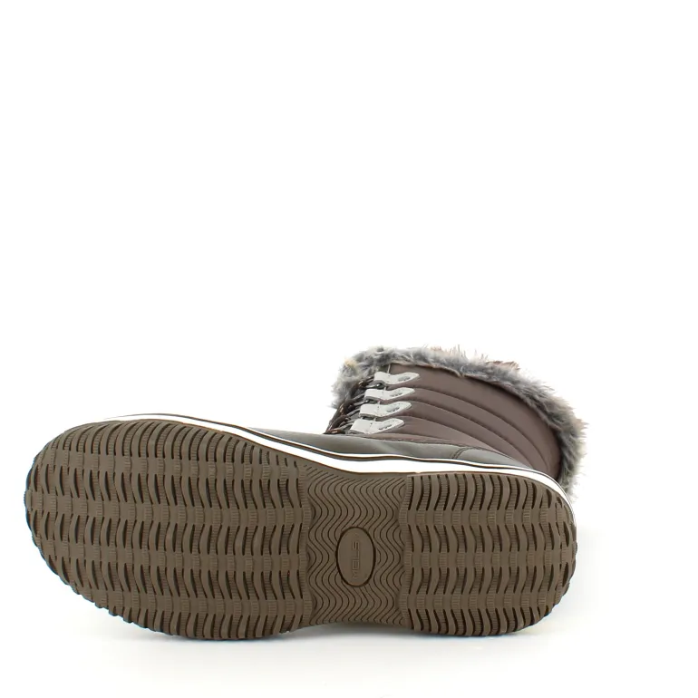 Den brune støvle har bbeige detaljer ved hægterne i snørebåndet, hvilket giver et stilfuldt udtryk.