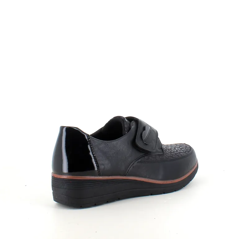 Den har en lav kilehæl som giver god komfort og sikre stabilitet.