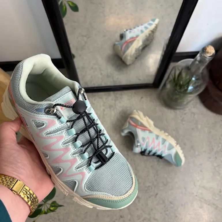 Med elastiksnøren er skoen let at tage af og på.