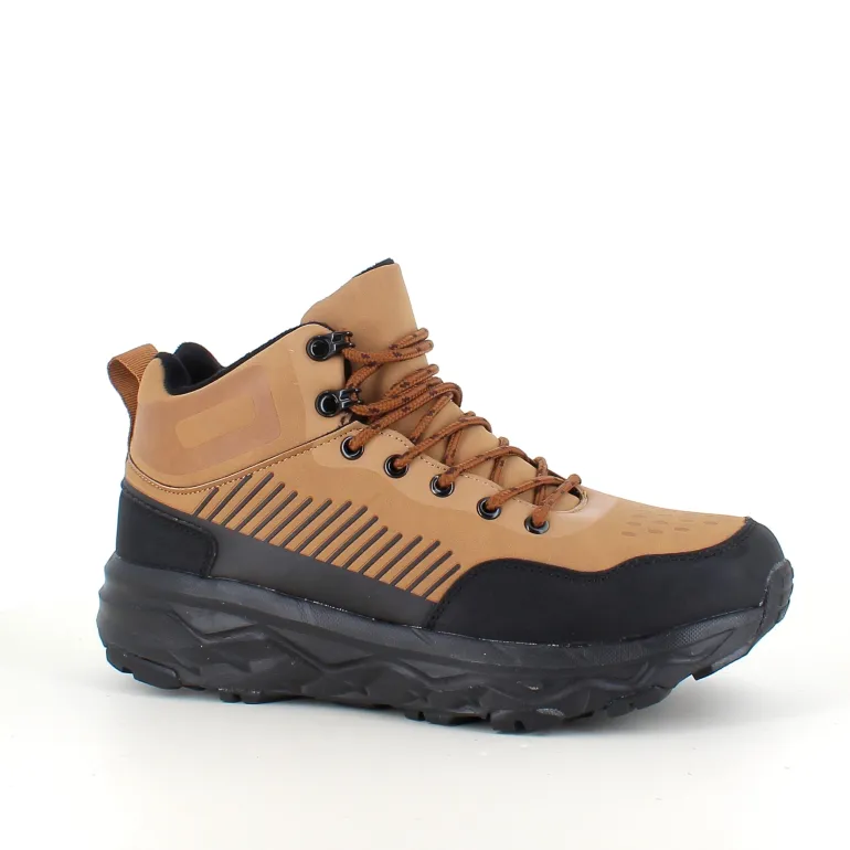 Stilfuld og praktisk herre ankelstøvle i lysebrun PU med moderne detaljer og kontrastfarvet sål.