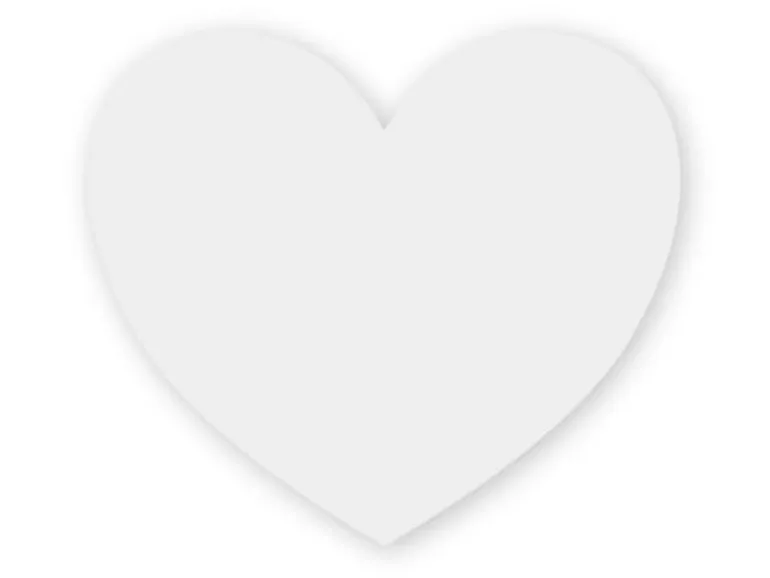 Navneskilt i hjerteformet med nål bagpå.
