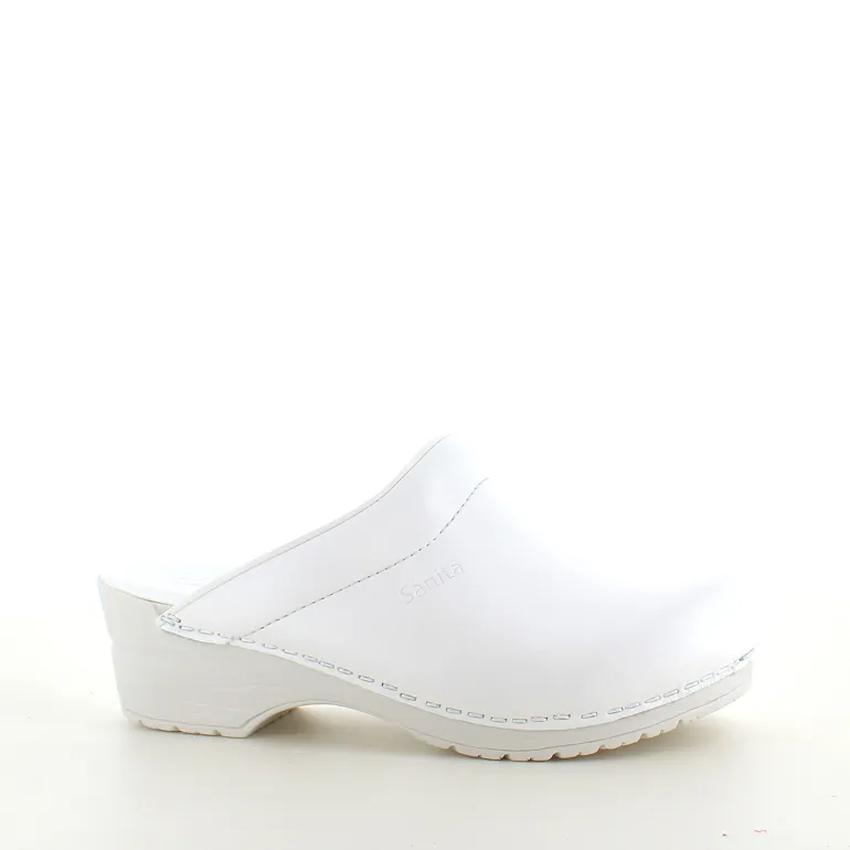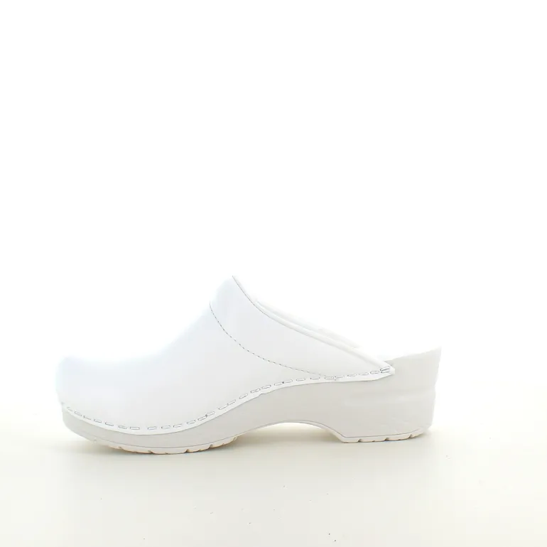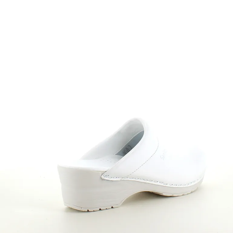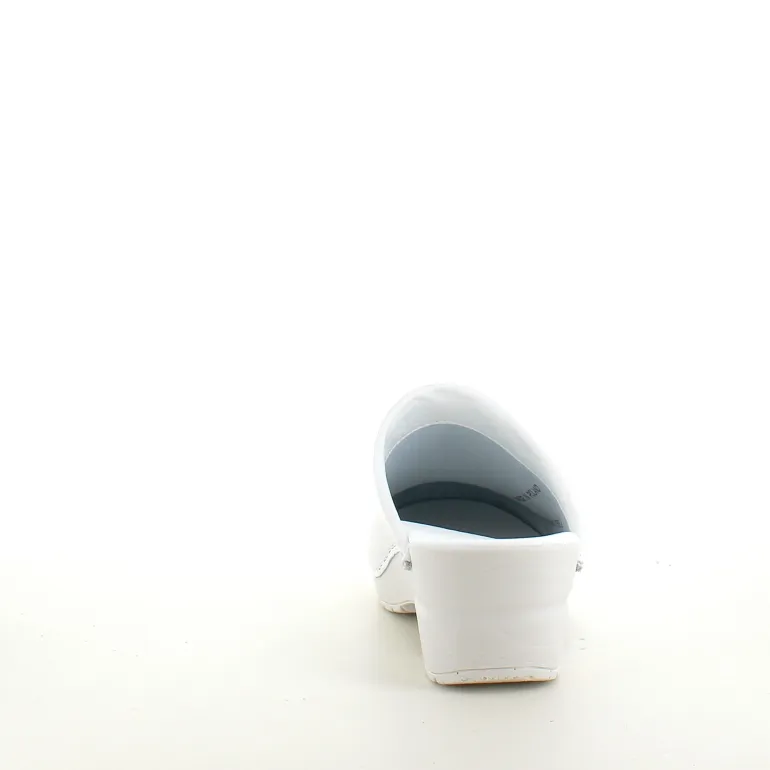 Disse hvide træsko er lavet af PU-læder, hvilket gør dem lette at rengøre og ideelle til professionel brug.