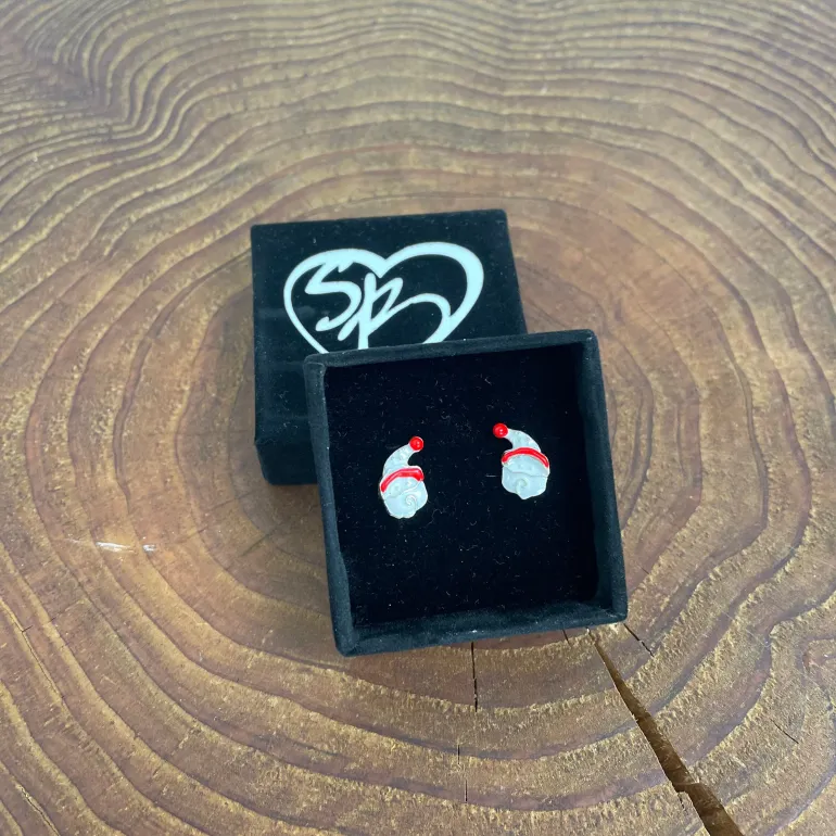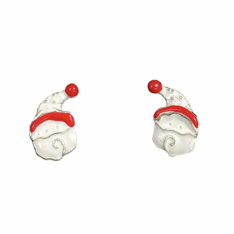 Julemand øreringe i sølvtone med røde og hvide detaljer.