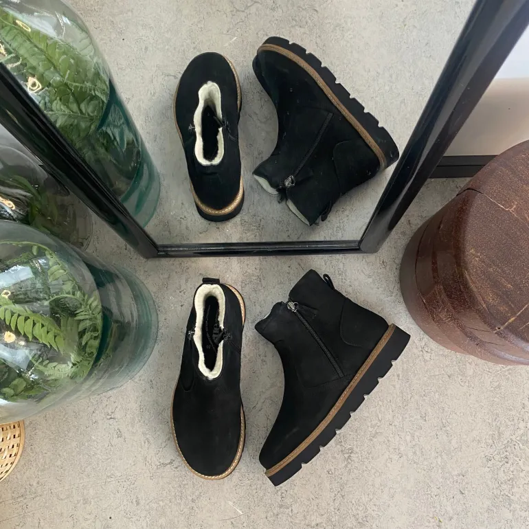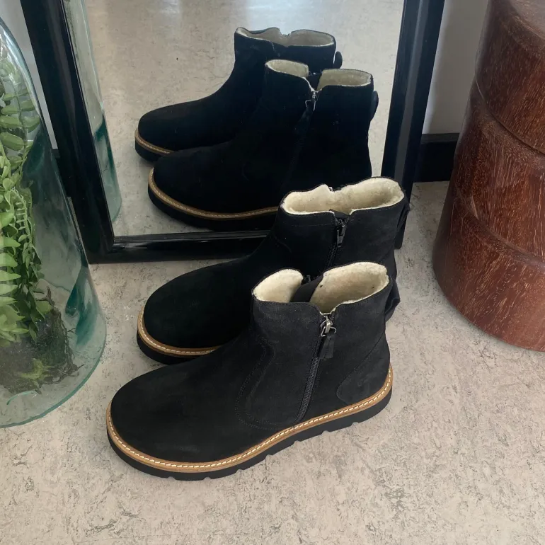 Overdelen i denne flotte støvle er i ruskind der giver et klassisk og stilfuldt udtryk, samtidig med at materialet er slidstærkt og behageligt.