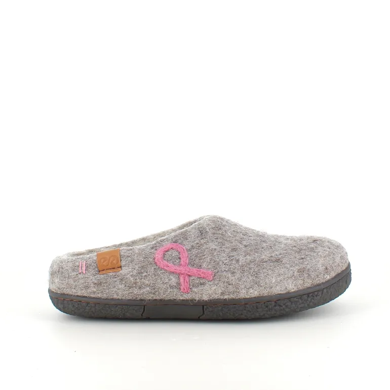 Oplev vores limited-edition uldhjemmesko, skabt i samarbejde med Støt Brysterne og Green Comfort, hvor hver eneste sko er håndbroderet med den velkendte lyserøde sløjfe på højre yderside. Når du køber et par uldhjemmesko fra denne kollektion, går 50 kr. direkte til Støt Brysterne, så du tager små skridt med stor betydning.