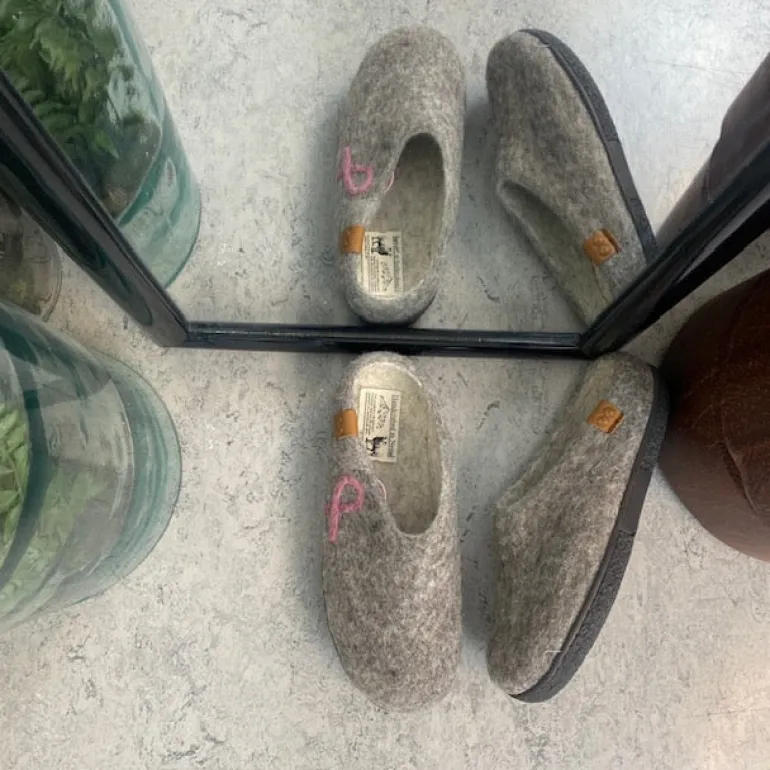 Hver Green Comfort hjemmesko er et håndlavet mesterværk, komplet med et unikt lille tag på siden, som indikerer, hvem der har håndlavet netop dit par. Denne personlige detalje betyder, at hver sko har sit eget særpræg.