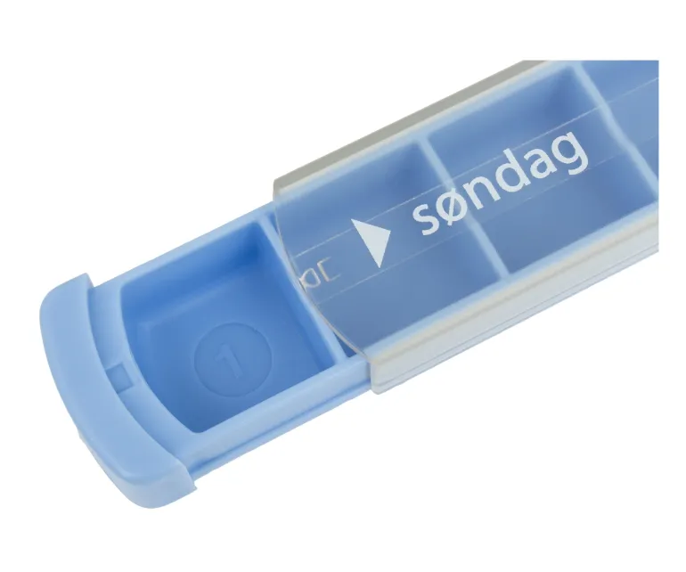 For ekstra brugervenlighed kan du skrive navn på hver enkelt æske, og ugedagene står tydeligt på forsiden. Under hver æske er der præget blindskrift med tallene 1 til 4, som gør systemet nemt at bruge for synshandicappede. Låget åbnes let ved blot at skubbe det til siden, hvilket gør æskerne ideelle for alle, også personer med nedsat fingerstyrke.