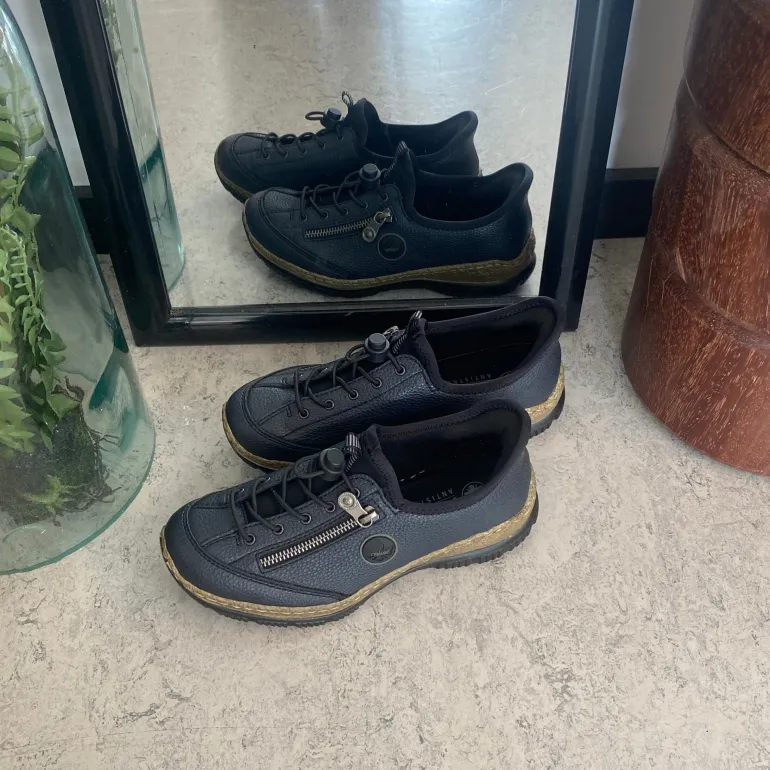 Mørkeblå Rieker slip-on sneakers til damer tilbyder en perfekt kombination af stil og funktionalitet.