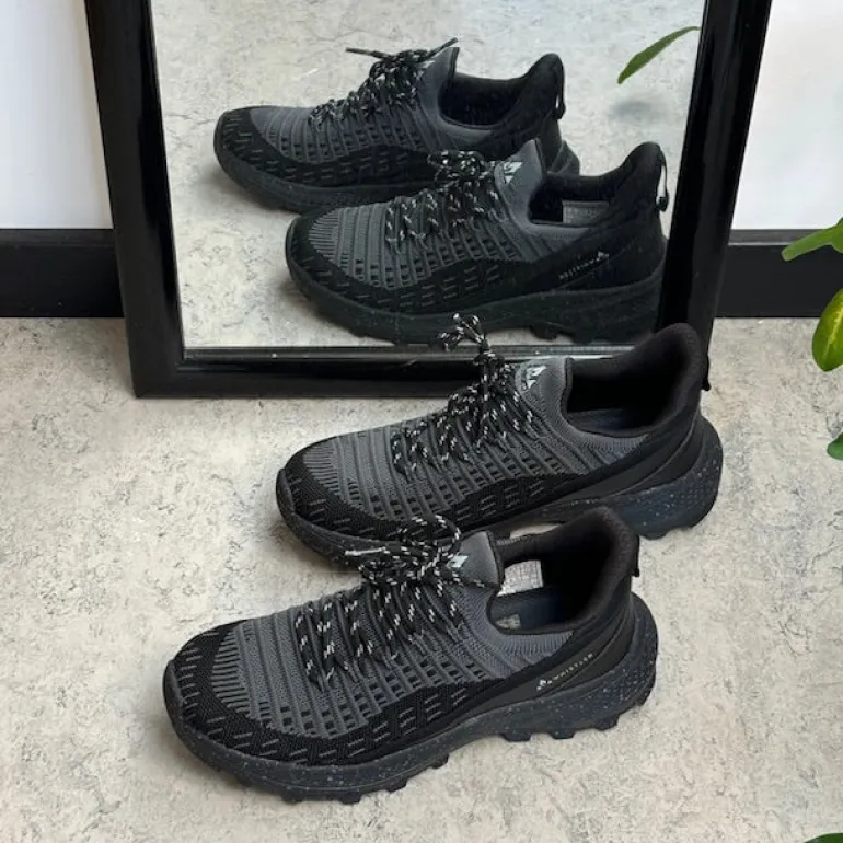Disse slip-on sko fra Whistler har en åndbar, strikket overdel i grå og sort. De har dekorative snørebånd foran og ekstra polstring ved hælen. Den aftagelige skum indersål giver let svangstøtte, mens den bløde mellemsål sikrer god dæmpning. Den fleksible ydersål har et robust mønster for godt greb. Fås i størrelserne 37-42 og findes også i en rosa/lilla farvekombination