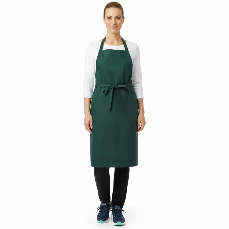 Forklædet kommer i en frisk grøn farve, men kan også vælges i hvid, khaki, bordeaux eller sort, hvilket giver dig mulighed for at matche med din arbejdsuniform eller køkkenindretning. Uanset hvilken farve du vælger, vil det slanke design og slidstærke materiale (65/35% polyester/bomuld blend på 210 g/m²) sikre, at du ser professionel ud, mens du udfører dine opgaver.