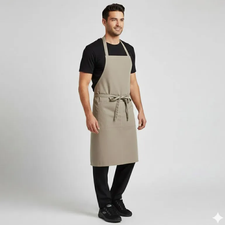 Nybo Workwear A/S præsenterer et funktionelt kuskeforklæde inspireret af traditionelt nordisk arbejdstøj, designet til moderne kokke og tjenere. Dette justerbare forklæde kommer med en nakkestrop, der kan justeres i længden for optimal komfort. Lange bindebånd ved hoften giver mulighed for at binde forklædet foran eller bagpå, alt efter hvilket look man ønsker. Forklædet er udstyret med en praktisk service-strop, perfekt til at holde et viskestykke klar til brug, samt to store lommer med 3D-effekt, der giver ekstra rummelighed til at opbevare nødvendige redskaber.