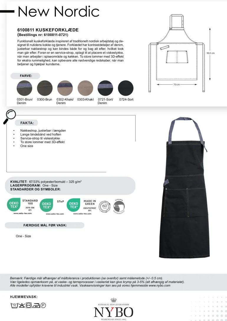 Det funktionelle kuskeforklæde, Nybo Sort/Denimblå Unisex New Nordic Kuskeforklæde, er en moderne fortolkning af traditionelt nordisk arbejdstøj, designet specielt til nutidens kokke og tjenere. Dette forklæde byder på en justerbar nakkestrop og lange bindebånd ved hoften, som kan tilpasses individuelt for maksimal komfort. Uanset om du ønsker at binde forklædet foran eller bagpå, vil det tilføje et elegant touch til dit professionelle look.