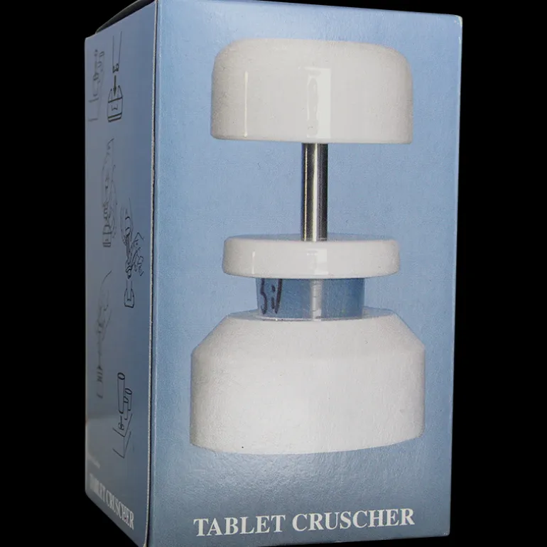 Hvid tabletknuser som nemt knuser tabletter ved at du trykker ned på toppen et par gange. Et rigtig godt redskab til dig, der knuser mange piller i løbet af en arbejdsdag, og hvor pillerne knuses direkte i det lille medicinbære.