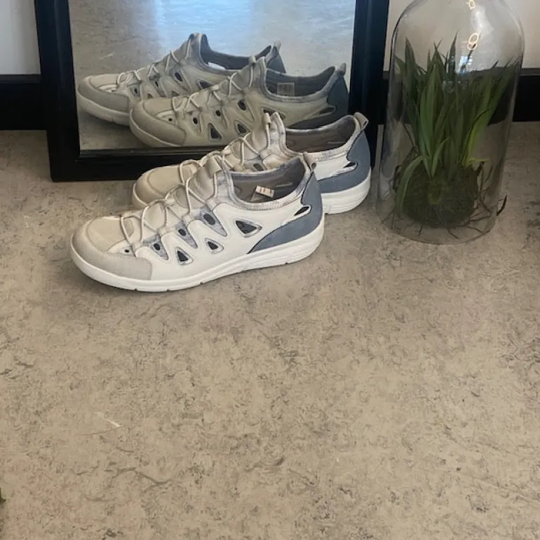 Denne lækre sko fra Relife i farven Offwhite er perfekt til dig, der elsker kombinationen af komfort og et lyst, let udtryk. Den er lavet med det unikke Soft Reflex System, som giver en behagelig affjedring og gør hvert skridt blødt og skånsomt – særligt til dig, der står og går meget i løbet af dagen.