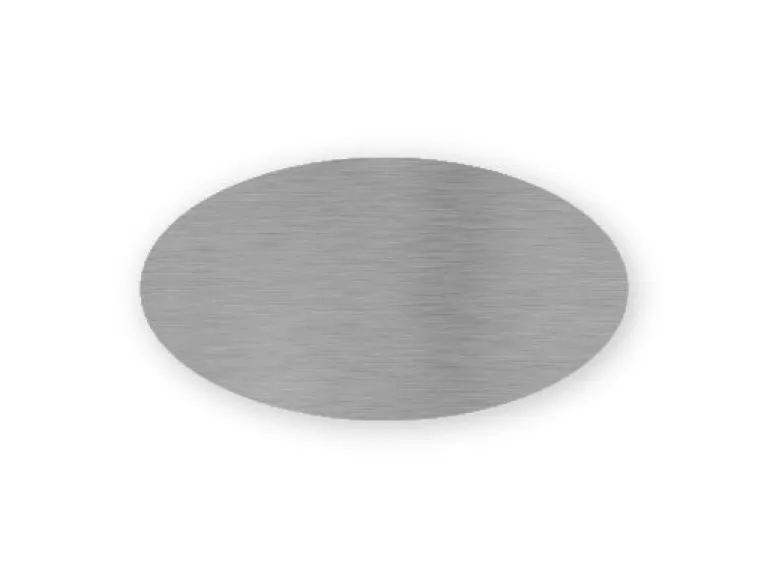 Det runde navneskilt måler 6.5 cm i længden og 3,5 cm bredden. Du kan få det med gravering og vælge mellem 3 forskellige skrifttyper.