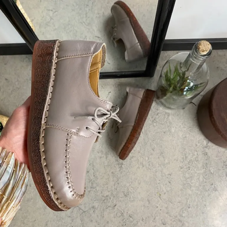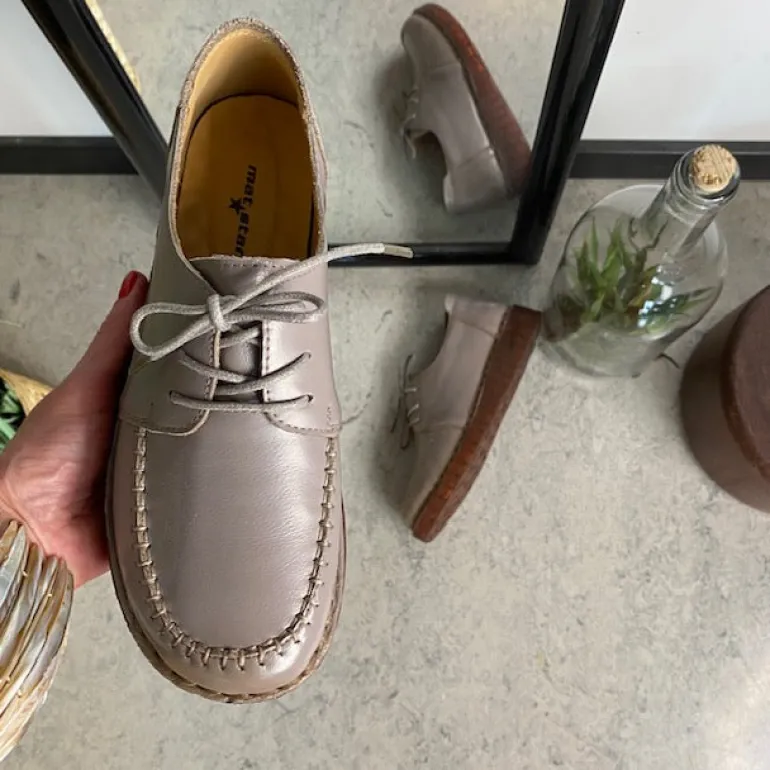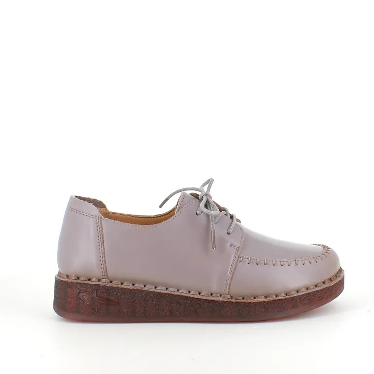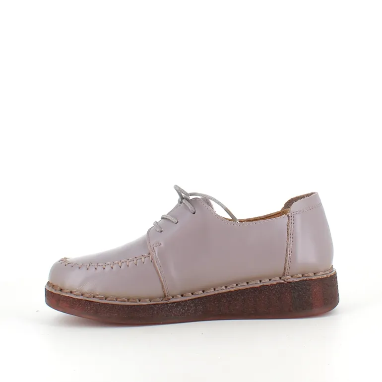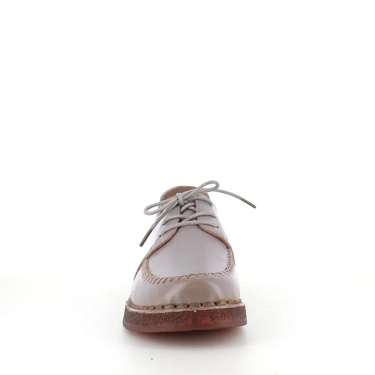 Snøresko i sandfarvet skind med flotte detaljer i skindets sammensyning på overdelen.