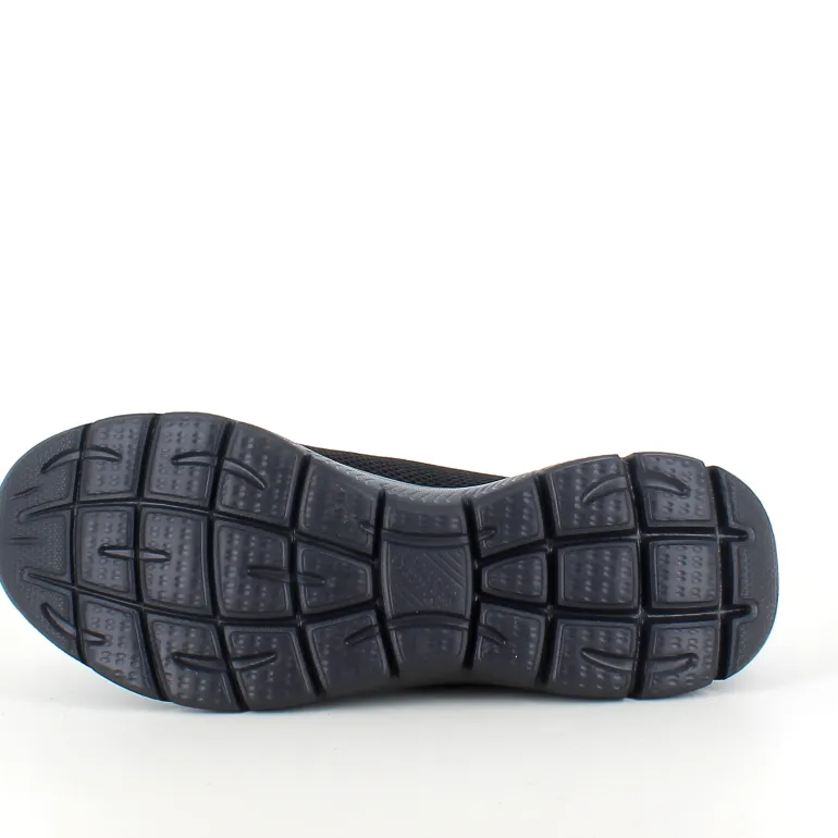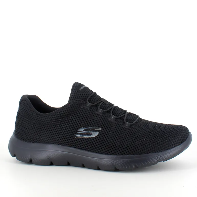 Skechers letvægtssko med Memory Foam har en fladstrikket mesh-overdel i ét stykke uden generende syninger og et blødt stoffor, der sikrer en behagelig pasform.