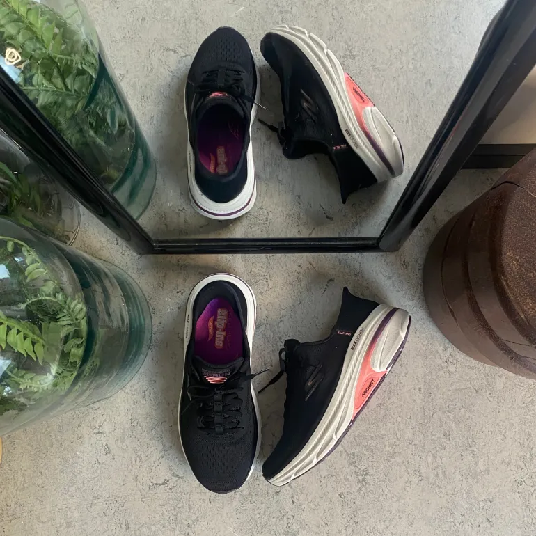 Den er desuden udstyret med Skechers Hands Free Slip-ins®, der gør påtagning enkel, samt Heel Pillow®, som holder foden stabil og støtter hælen optimalt.