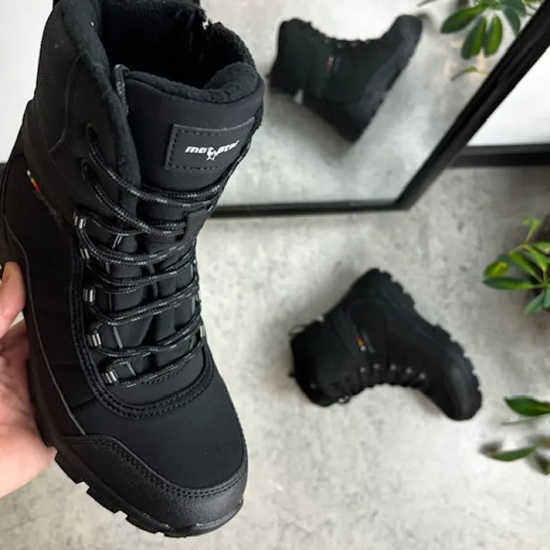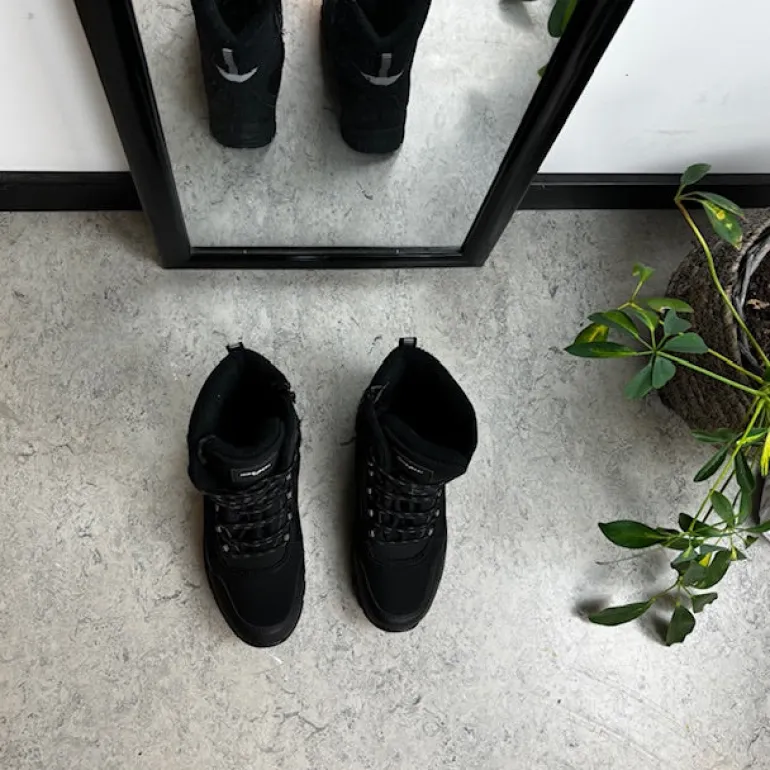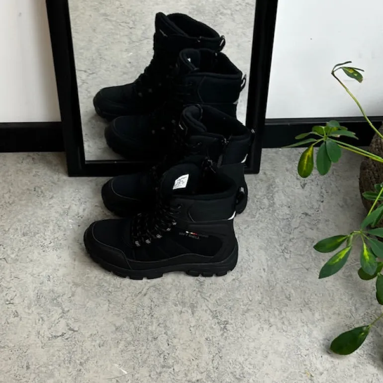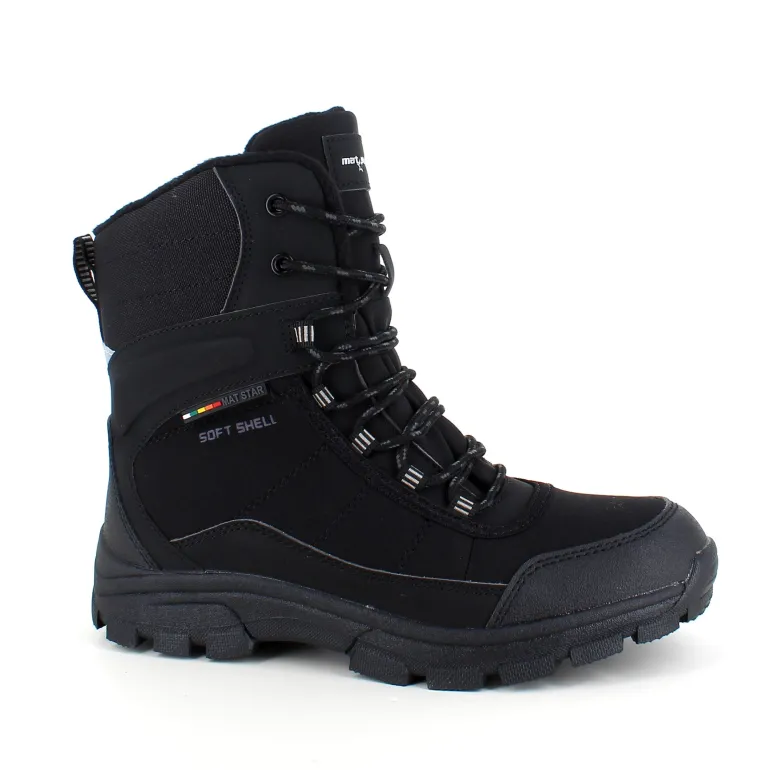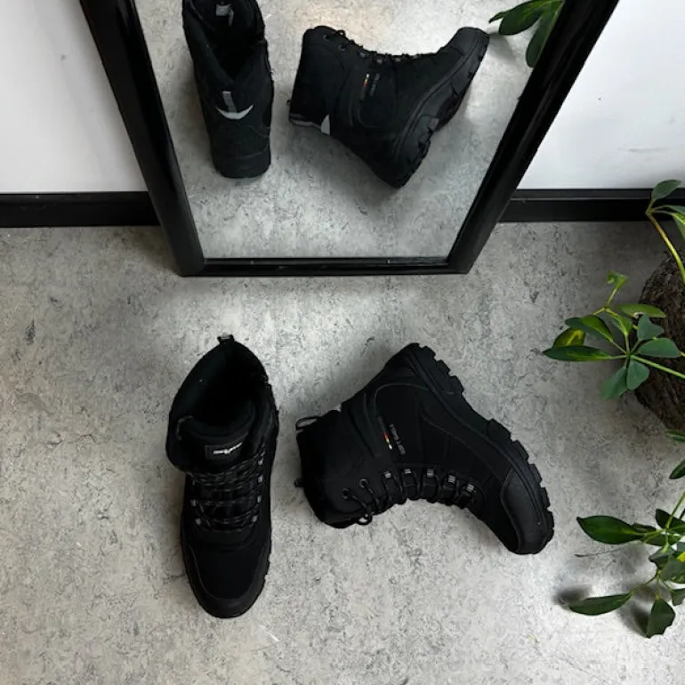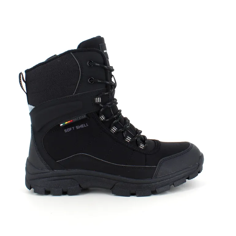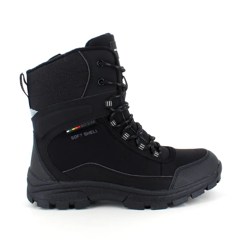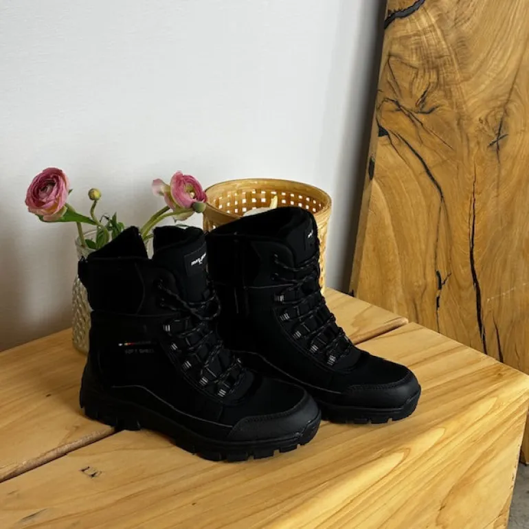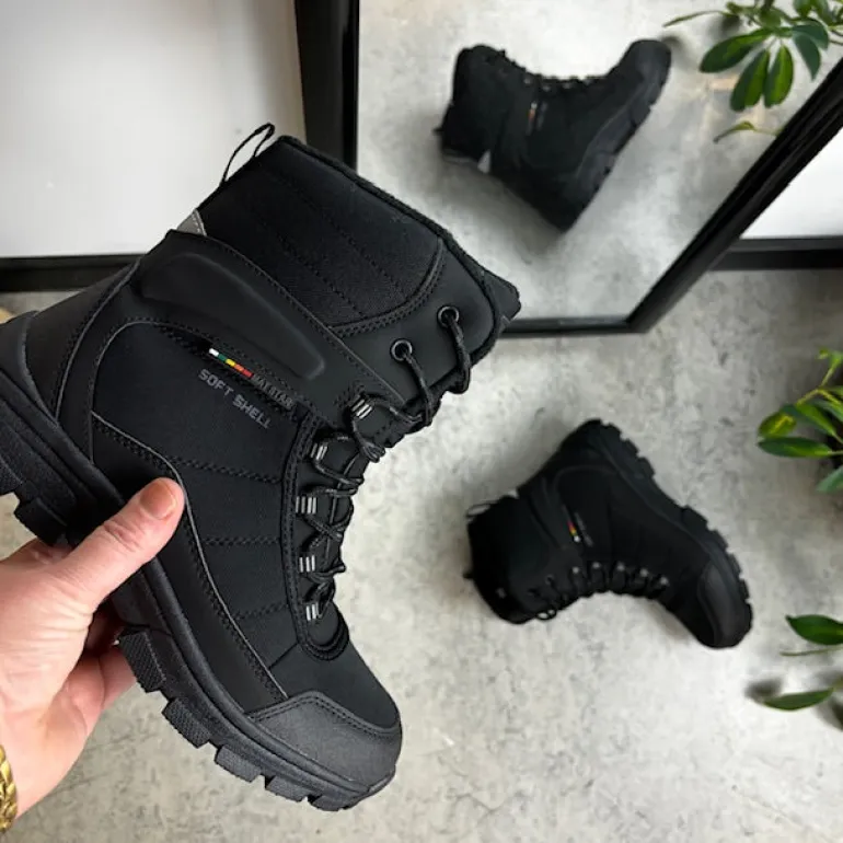 Softshell vinterstøvle til kvinder og mænd med en sort overdel og forstærkninger på snuden og hælen.