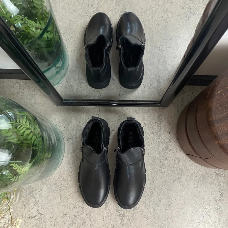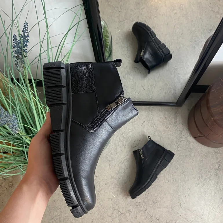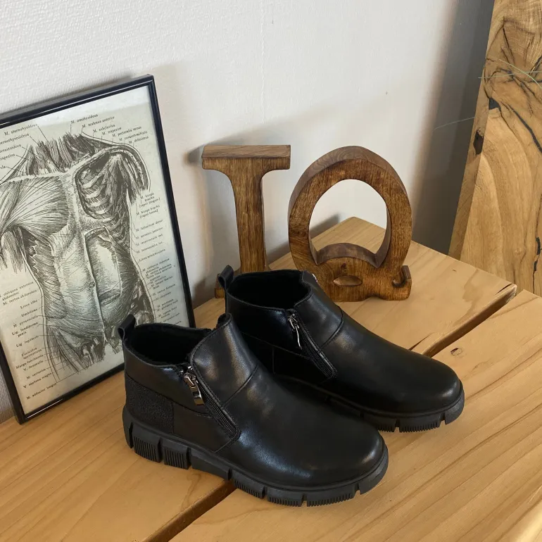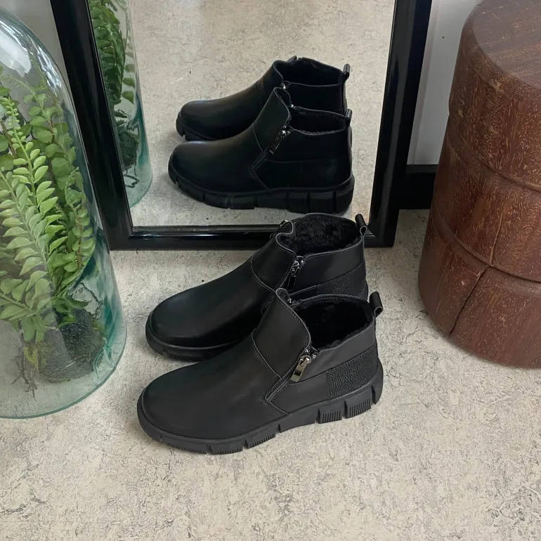 Denne sorte ankelstøvle kombinere klassisk design med praktiske detaljer. Støvlen er foret med blødt og varmt for, som sikre komfort i de kolde måneder.