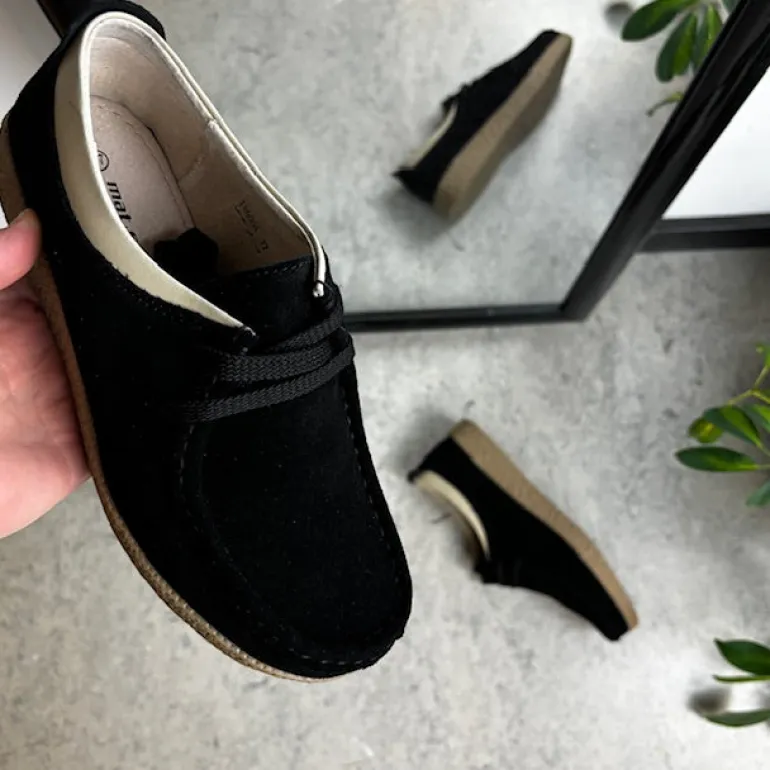 Vær den første til at anmelde “Sort ruskindssko med rågummisål” Annuller svar