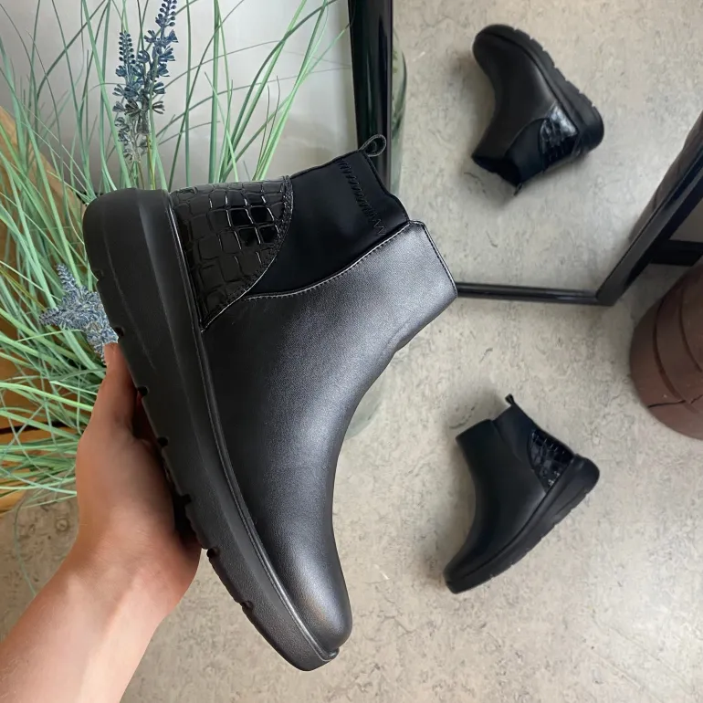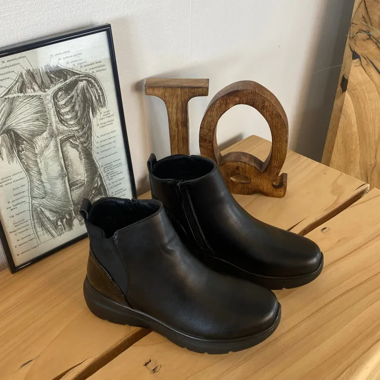 Denne lette sorte støvle kombinere enkelt design med høj komfort og praktisk funktionalitet.