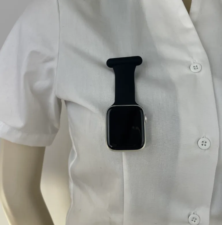 Remmen har en nål bagpå, så den er nem at sætte i tøjet.