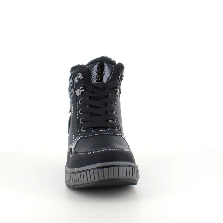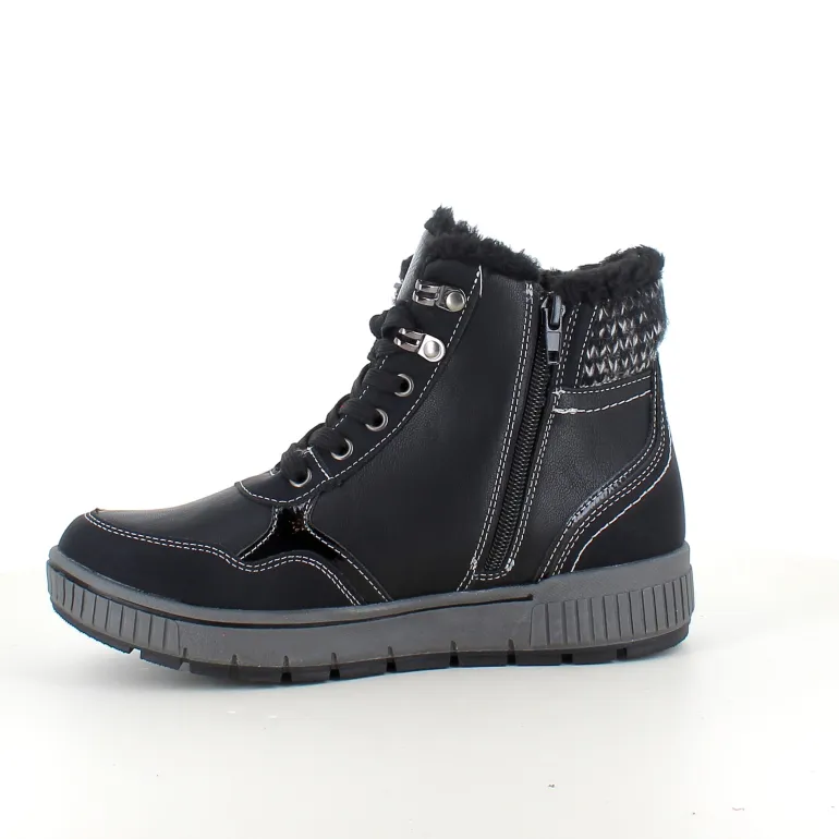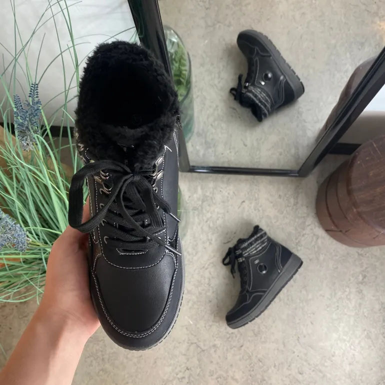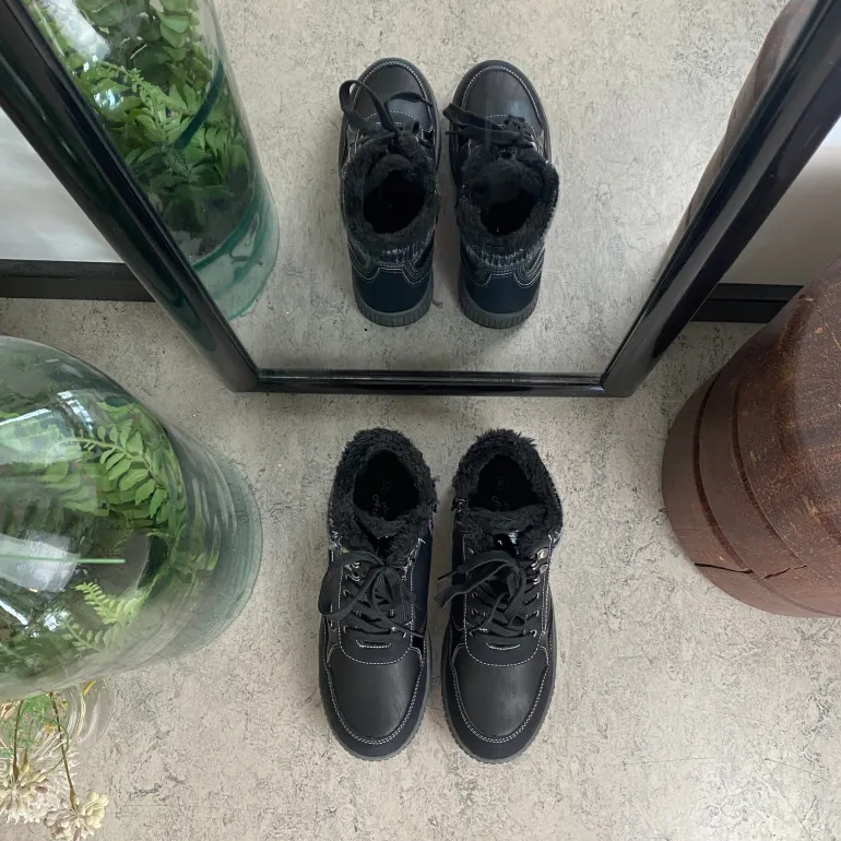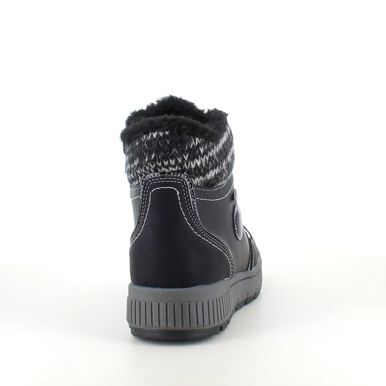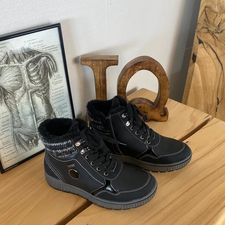 Vinterstøvle i sort, med strikket detalje på skaftet.